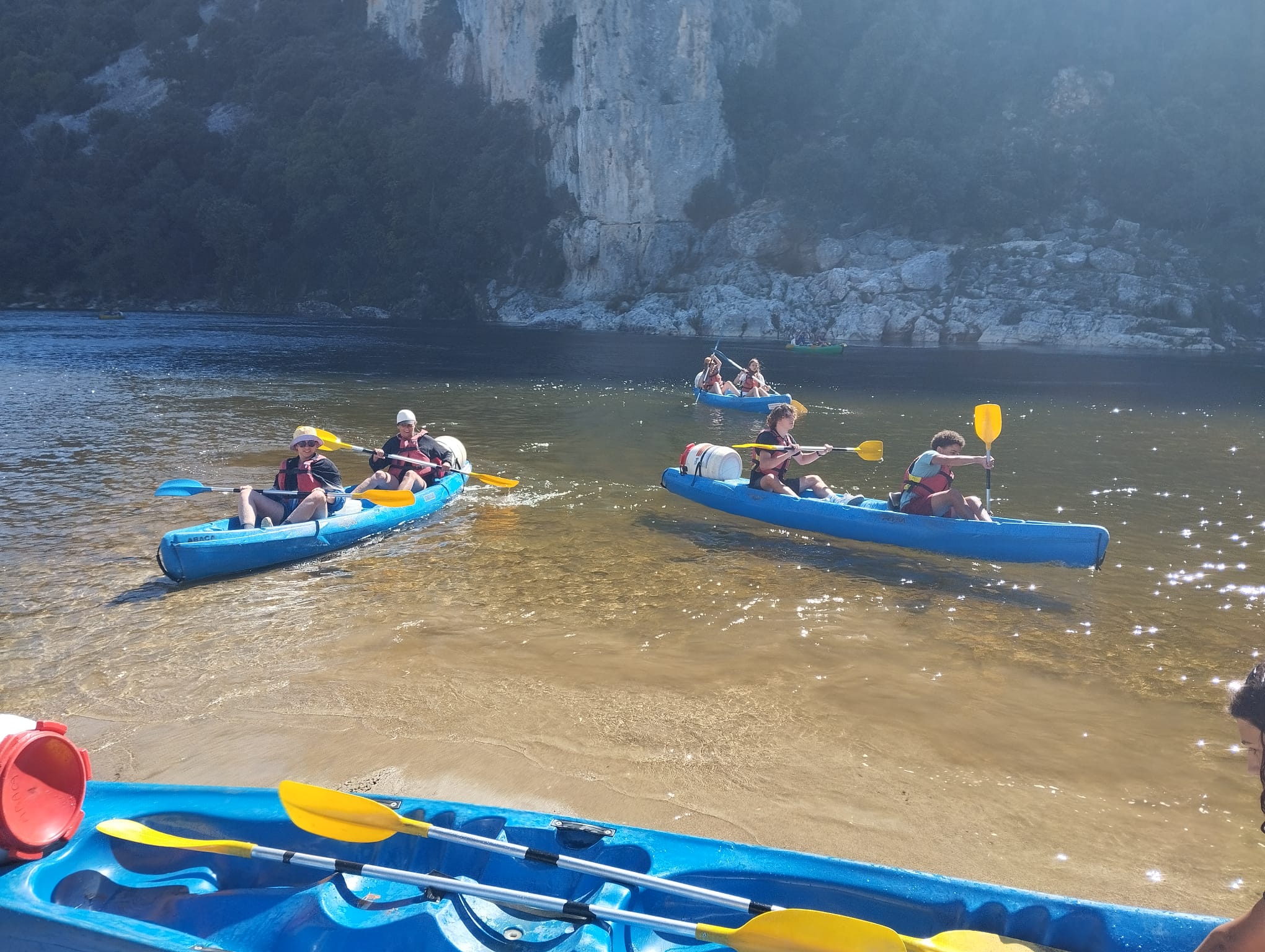 Arrivés, nous avons été très gentiment accueillis par Marion et Johan, les propriétaires du camping. Marion nous a montré notre emplacement — qui était très grand- et puis nous avons installés nos tentes et notre espace cuisine/repas. On a ensuite profité du camping (piscine, trampoline, ping-pong, aire de jeux). Nous nous sommes couchés tôt, car le lendemain, nous allions faire les Gorges de l’Ardèche en kayak.